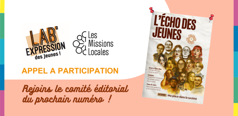 Bonne nouvelle : un nouvel appel à participation a été lancé par le Lab’Expression des jeunes pour constituer le comité éditorial du prochain numéro du magazine L’Echo des jeunes, le journal créé par et pour les jeunes des Missions Locales !